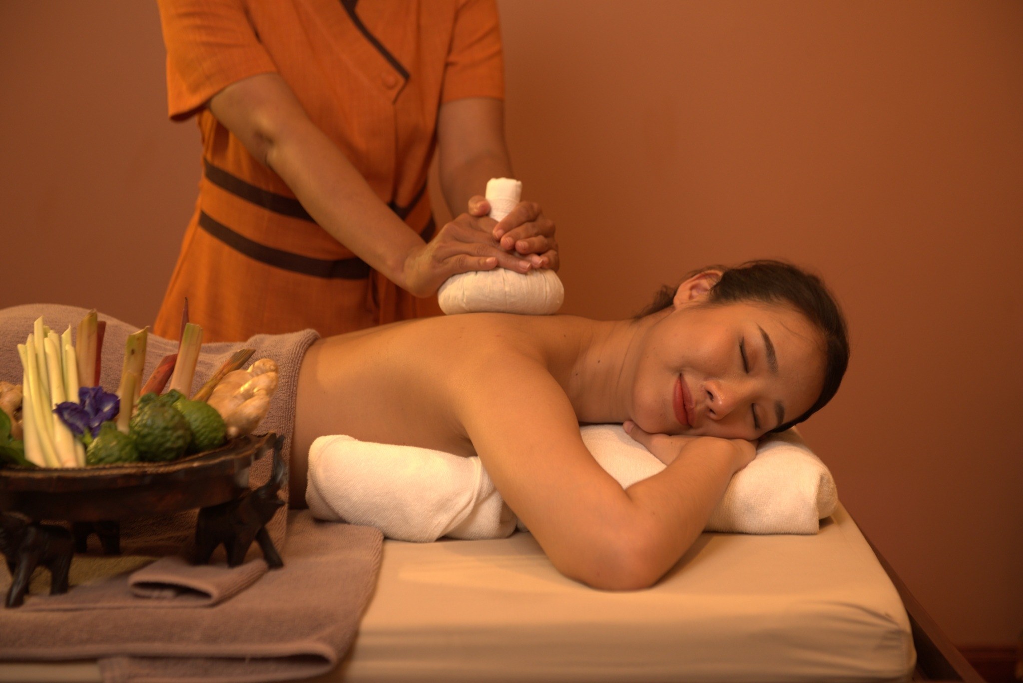 การปรับสมดุลของร่างกาย โดยการอุ่นลูกประคบสมุนไพรหลายชนิดที่มีประโยชน์ประคบให้ทั่วร่างกาย เพื่อคลายความตึงเครียดของกล้ามเนื้อและต่อเนื่องด้วยการนวดนํ้ามันหอมอโรมาเพื่อบํารุงผิวพรรณ